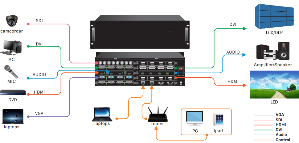 the needs of various LCD or LED splicing scales, providing a high-performance solution for dynamic video display setups.